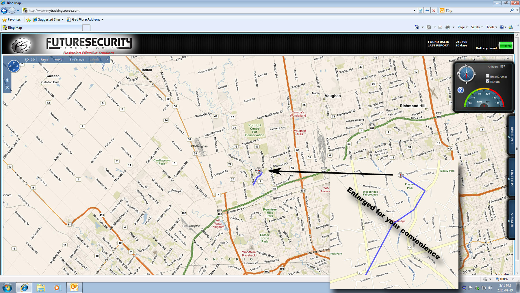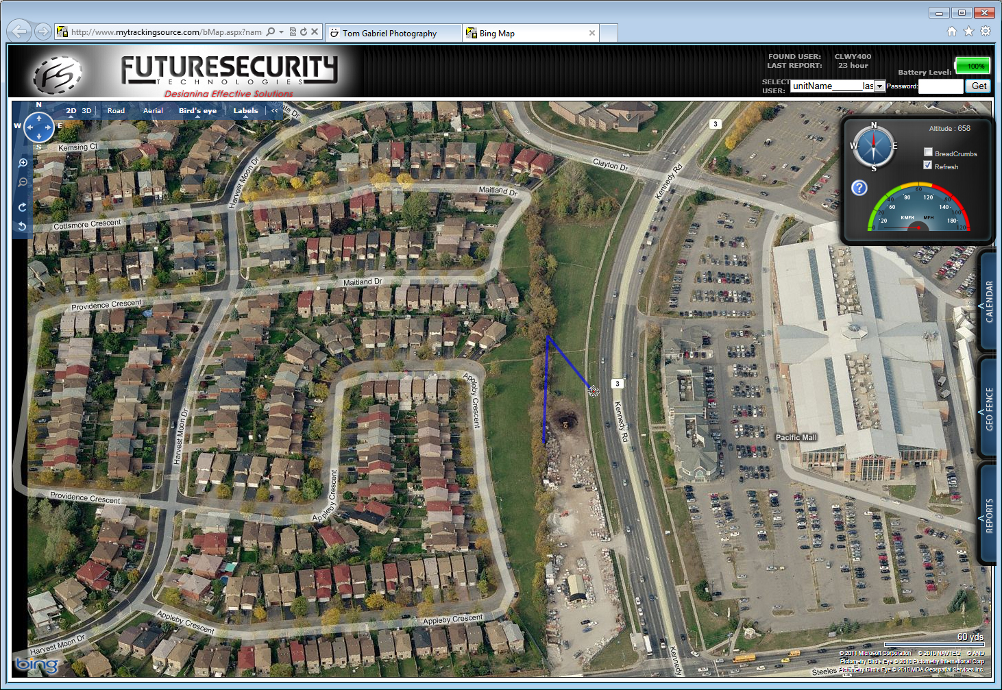 GPS Tracking Systems are monitored "live" with any computer or device that has internet access. Click on the image examples for a full size screen shot of an actual GPS session.